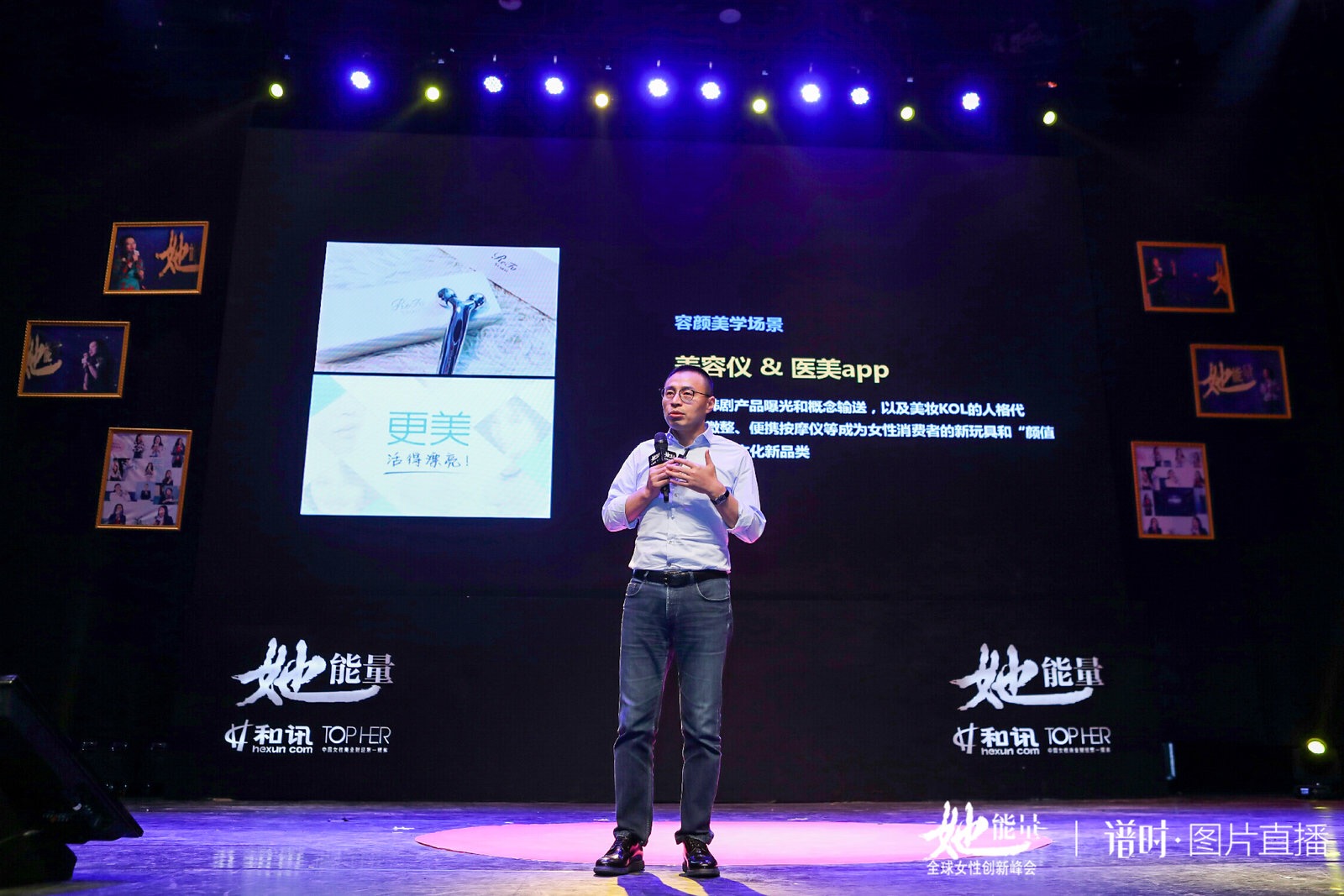 我们这次峰会是由和讯网,还有中国女性商业财经第一媒体TOP HER联合主办的,而且今天下午大家可以在会场当中通过谱时实时发布现场图片,大家可以通过大屏幕上的二维码扫描一下,可以将今天下午的精彩瞬间分享为各位好朋友,同时今天的活动也通过和讯网的官方网站还有TOP HER的官微进行全程直播,同时微吼也会进行视频直播。大家进场的时候会有一个手环,上面的二维码大家可以扫描一下,也是可以进入听众群获得分享的链接。