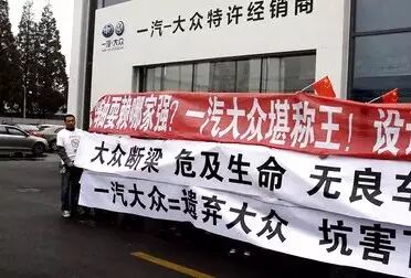 事件:2014年10月18日,国家质检总局发布公告称,一汽大众已于10月15日提交召回计划,将召回56万辆速腾轿车,该车存在断轴的安全隐忧。不过,虽然一汽大众宣布召回,但是他们的态度傲慢,表示只愿意给存在安全隐患的后轴纵臂上安装金属衬板,并非更换存在安全隐患的后轴,才会引起这场声势浩大的全国速腾车主维权日。