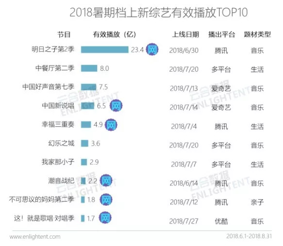 有效播放量1000万以上、已上线超过5期、除衍生类内容之外的综艺节目。