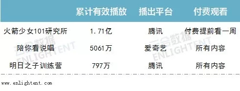 用户的选择不仅体现在题材上,更体现在为内容付费的意愿上。“爱他就为他花钱”不仅是追星女孩的心声,也适用于内容付费市场,在网剧、网大付费日渐成熟的当下,综艺付费的苗头也开始出现。“会员付费看一周”的《火箭少女101研究所》出现在暑期播放前30榜单中,取得了暑期付费节目的最好成绩,目前该节目已获1.71亿的累计播放量。