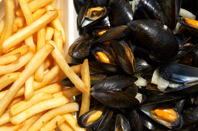 比利时人以热爱生活情趣出名,其饮食文化受到法国料理的些许影响,以各式海鲜贝类最著名,代表是淡菜配薯条。淡菜是一种黑壳的海贝类产品——贻贝,比利时人通常用芹菜葡萄酒清煮,配以油炸的薯条。大部分当地的餐馆都有这道菜,尤其以秋冬季最多。以白酒熟煮的淡菜,肉肥多汁,配上炸得恰到好处的薯条,以及冰镇爽口的啤酒,简直就是大快朵颐。