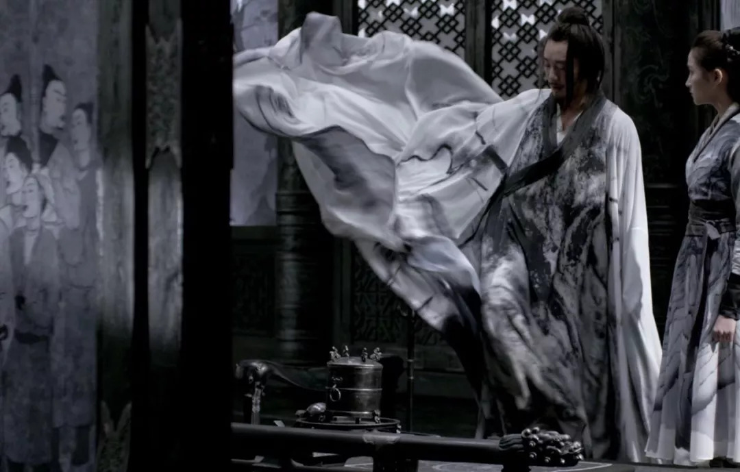影片《影》的故事改编自编剧朱苏进的作品《三国·荆州》,整体看来,像是一部水墨画式的莎翁剧。影片中的人物身着水墨风的衣衫,在取材于三国、又架空于历史的时空中,演绎了一段动人的复仇史诗。既有《李尔王》式悲壮的牺牲,也有《麦克白》式阴沉的权谋。