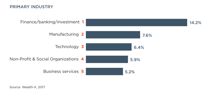 然而,亚洲的这一波大幅增长主要是由新一波顶级富豪企业家从金融、制造业和科技行业掘金得来。金融投资行业的掘金能力仍旧稳坐第一,比例更是高达14.2%,甚至是排名第二的制造业的2倍。