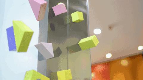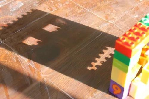孩子们可以把积木贴在玻璃窗、门等光滑的表面上。