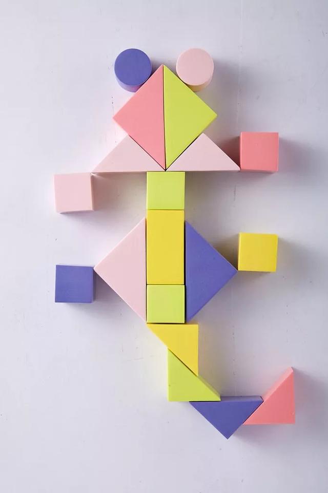 除了拼接的玩法之外,还能有更多玩法培养孩子、亲子互动,像这样用积木来画图形,体验线条和空间感。