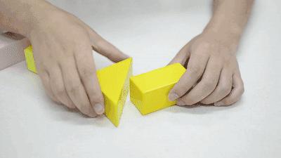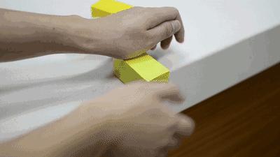 当两块积木合并到一起的时候,像吸盘一样,能够把中间的空气挤压掉,然后稳稳地贴在一起。
