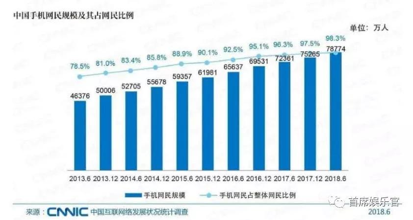 但对比我国网民规模以及手机网民规模近几年的变化,可以发现:虽然网民规模依旧在不断增加,增速依旧,但手机网民的规模开始趋于饱和、增速逐渐放缓——互联网和移动互联网的用户正趋于饱和。