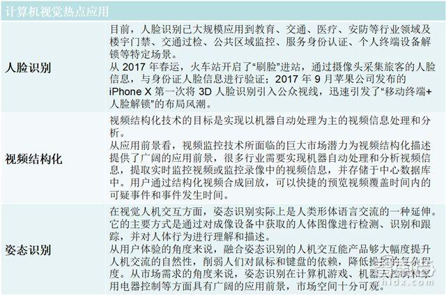 在政策引导、技术创新、资本追逐以及消费需求的驱动下,基于深度学习的计算机视觉应用不断落地成熟,并出现了三大热点应用方向:人脸识别、视频结构化、姿态识别。