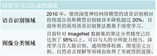 深度学习全称深度神经网络,本质上是多层次的人工神经网络算法,即从结构上模拟人脑的运行机制,从最基本的单元上模拟了人类大脑的运行机制。目前,深度学习已经在计算机视觉、语音识别、自然语言理解等领域取得了突破(详情参考第209期智东西内参)。