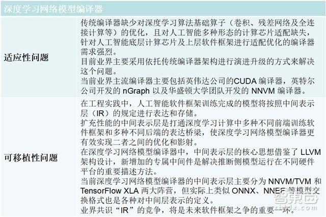 此外,推断软件框架质量参差不齐,制约了业务开展,编译器缺乏统一的中间表示层标准,云、侧端AI芯片的市场格局有待形成。
