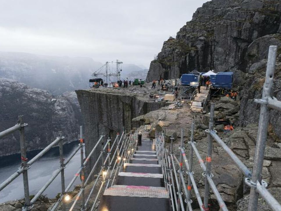 摄制过程中,史密斯在各个摄制地与不同灯光师们紧密合作,在新西兰是杰米·库珀(Jamie Couper)、在巴黎是格雷戈里·弗罗茫坦(Gregory Fromentin)、在挪威则是索尔·埃里克· 洛肯(Thor Erik L kken)。每位灯光师都负责在史密斯携主摄制组人员到场前确保场地准备就绪。史密斯分享其中一例:“在挪威,索尔·洛肯需要带领团队将六台发电机空运至布道石 (Pulpit Rock)崖顶。”这个陡峭的悬崖也被称为圣坛岩(Preikestolen),为惊心动魄的直升机追逐战后的高潮戏码——悬崖决斗提供舞台。“他们还必须铺设电缆将整个导演监看站运至崖顶,还需为储物箱、温尼巴格房车、数百盏工作灯和一套餐饮设施供电。”