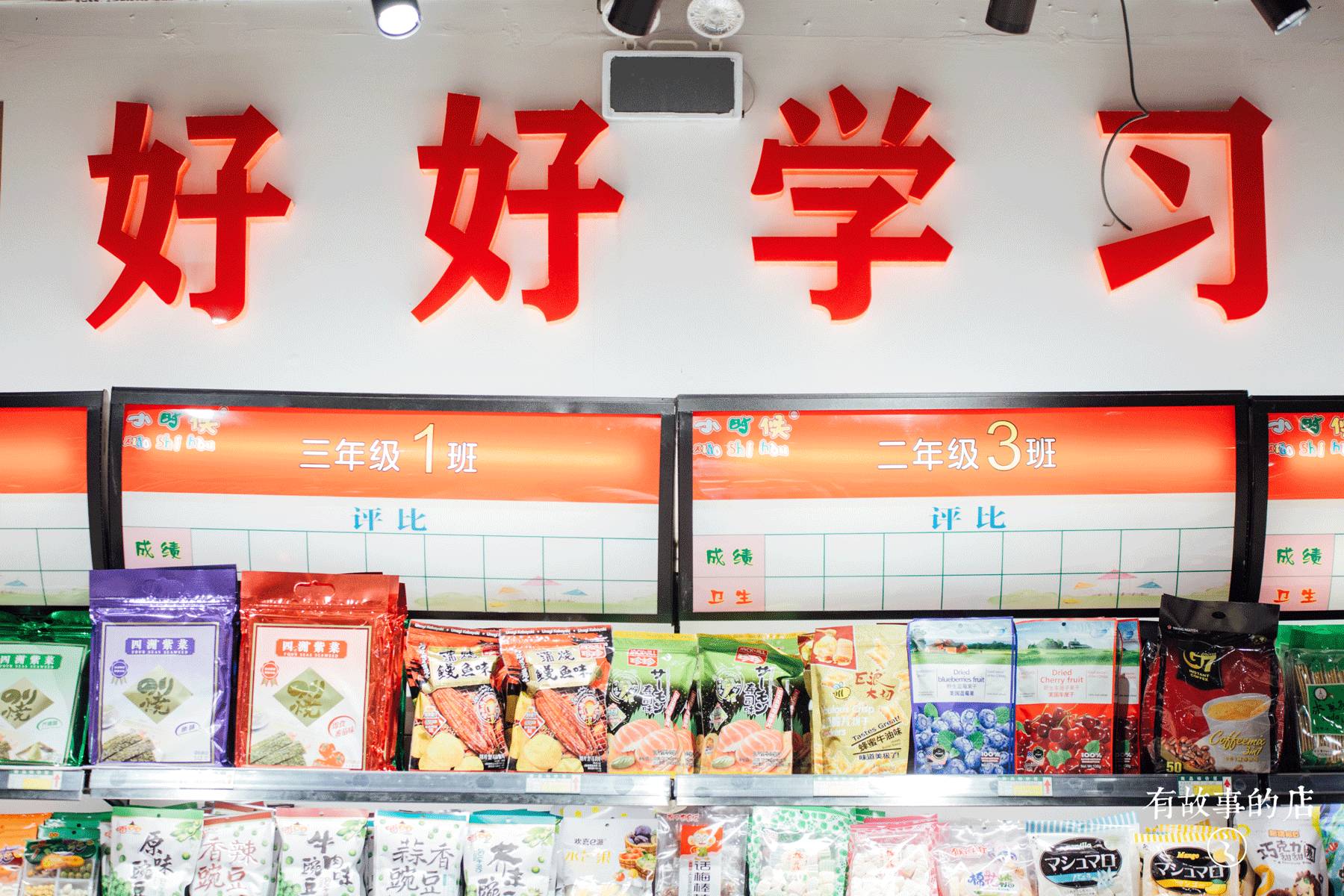 于是他就决定要开一家小店,里面摆满小时候最爱吃的小零食和小玩具,“小时候第一小学”就这样诞生了。