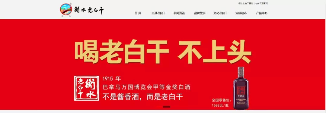 在预增公告发布几天后,老白干随即更改了广告语。进入衡水老白干官网,就看到“喝老白干,不上头”这一全新广告语。