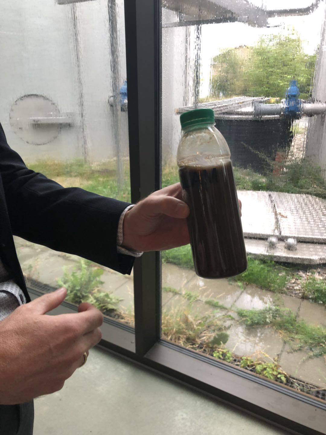 赫勒福医院的污水流入这里后,先经过预处理程序,筛掉大于直径大于1.5mm的杂质颗粒。这些深褐色的污水会流入处理池,缓冲器对污水流量进行平滑处理,再进行生物处理,使用间歇性充气处理掉污水中的氮,然后通过化学方式对污水中的磷进行沉淀。