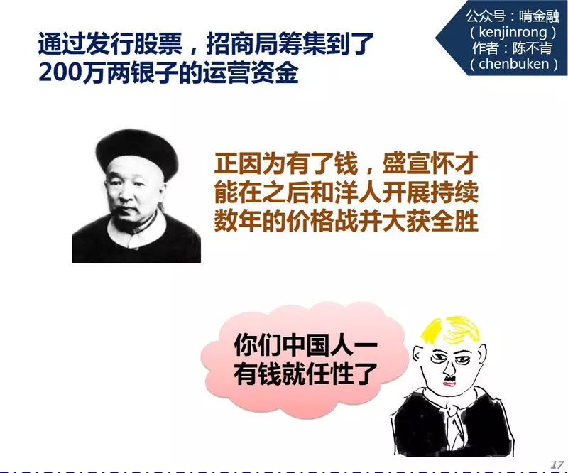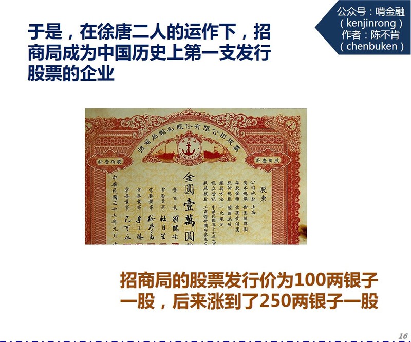 晚清的轮船招商局最初下洋务运动思想的指导下开始筹备,在李鸿章的掌舵下,发展成为了中国历史上第一支发行股票的企业。
