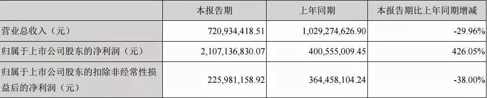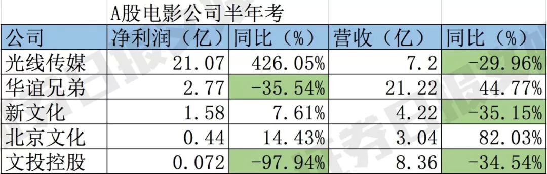 数据显示,光线在上半年的营业收入7.2亿元,同比下降29.96%;归属上市公司股东的净利润为21.07亿,较去年同期增长426.05%。
