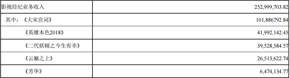 但非常有意思的是,从财报来看,一部尚未播出的《大宋宫词》就已经为北京文化回款1.019亿元,占其影视经纪业务总收入的40.28%。相比之下,片单中其他作品的贡献可就没这么大了。