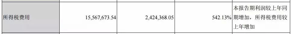对此,公司在财报中的标注显示,是因为报告期内利润较上年同期增加,所得税费用较上年增加。