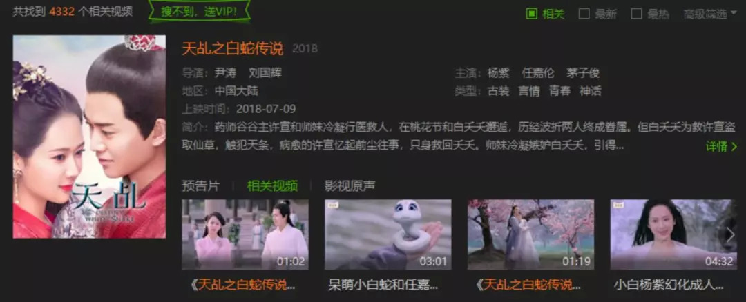 从这个暑期档的作品来看,比较耳熟能详的,是杨紫搭档任嘉伦的《天乩之白蛇传说》,打着翻拍《白蛇传》的名号,但似乎跟原作没有几毛钱的关系。同时非常神奇的是,在其7月初上线不久后就突遭下架,江湖传言是因“曲解佛教僧人形象”,被多人举报投诉所致。