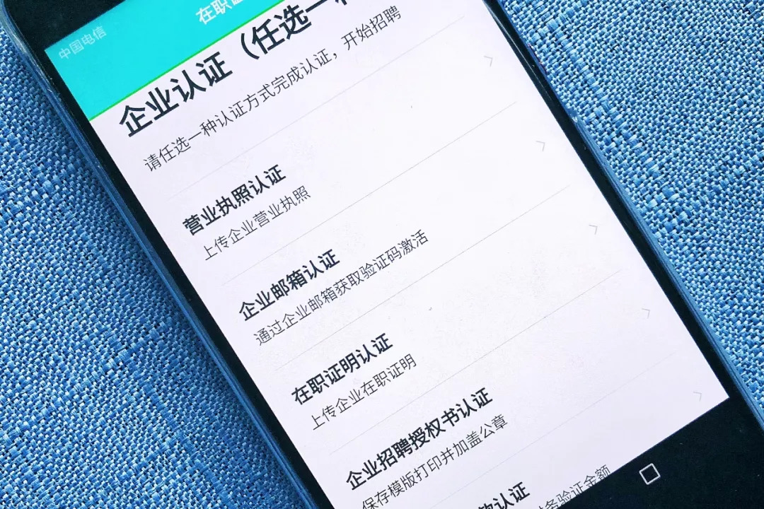 注册后发布招聘信息,需要公司认证,可选择上传营业执照、企业邮箱获取验证码、在职证明、企业招聘授权书、对公账号并联系财务验证金额等认证。一次未能通过验证的,下次再做验证时,级别会提高。