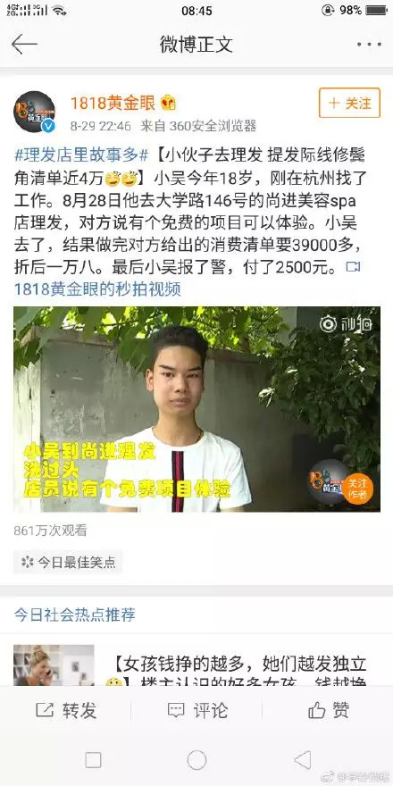 最终,理发店老板迫于压力,退还了小吴全部的费用。