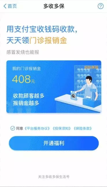 让李伟享受到保险理赔便利的,是蚂蚁金服和保险公司合作推出的“多收多保”业务,码商用支付宝收款越多,相应得到门诊报销金就越多。这种实惠,让几千万像李伟这样的小商户认识到了保险的价值,也体验到了科技在保险理赔中带来的便利性。