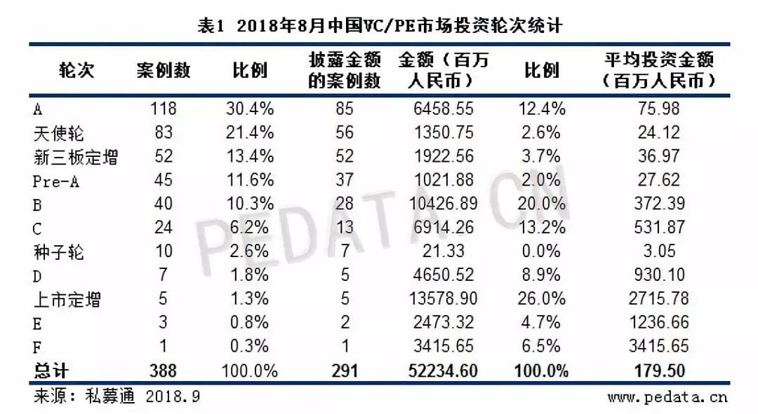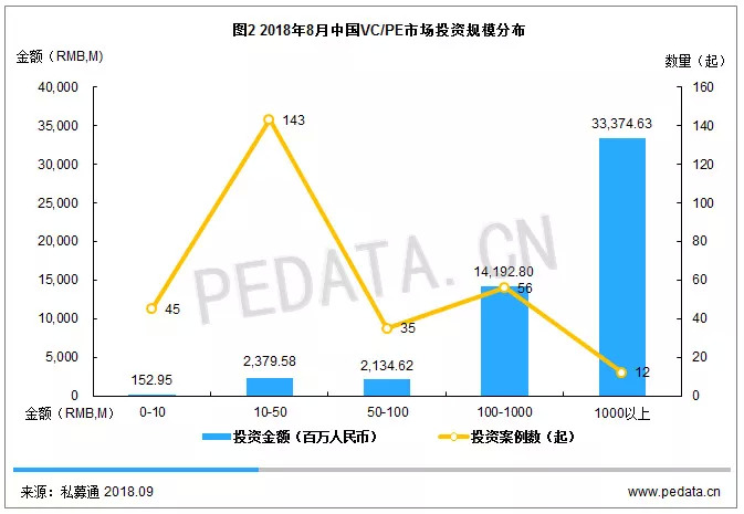 8月VC/PE市场投资额骤减,大额融资事件融资金额下降