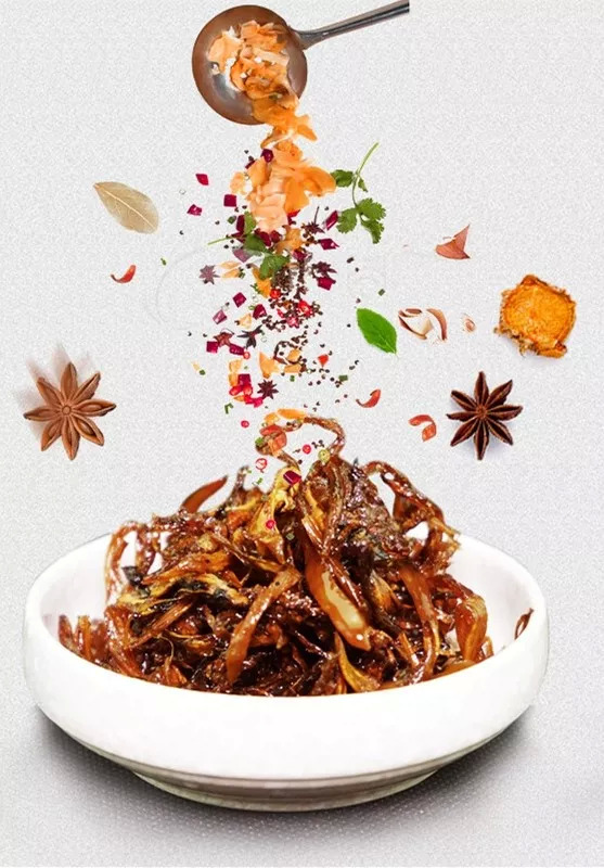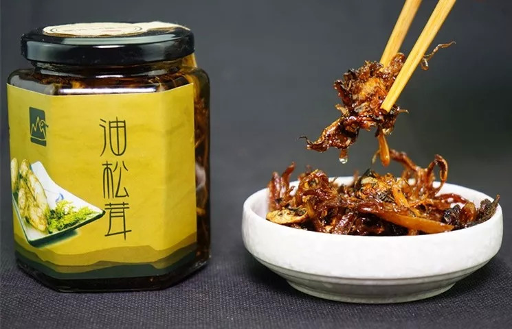 放入一定量的菜籽油加热,让松茸释放出水分,然后加入盐、芝麻、香料……文火慢慢炼制3小时,金黄中带有一丝辣椒的红色,油中透亮,让人忍不住想尝一口。