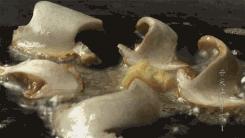 随后就是加热,让松茸释放出水分,再文火慢慢炼制——这也是「雪山云朵」与市场上做法不同的地方。市场上大部分的油松茸都是炸出来的,脱水的很彻底,虽利于保存,但失去了菌菇的嚼劲,吃起来枯。文火炼制的油松茸,比新鲜松茸更有滋味,像是用热油把全部的香锁在了薄薄的菌片里,趁热吃简直是人间至味,一口下去,灵魂为之一震。这个步骤说起来简单,可没有几年经验的厨师是掌握不来的,火候太小,松茸条容易粘连在一起;火候大了,又容易炼制出焦糊的味道。