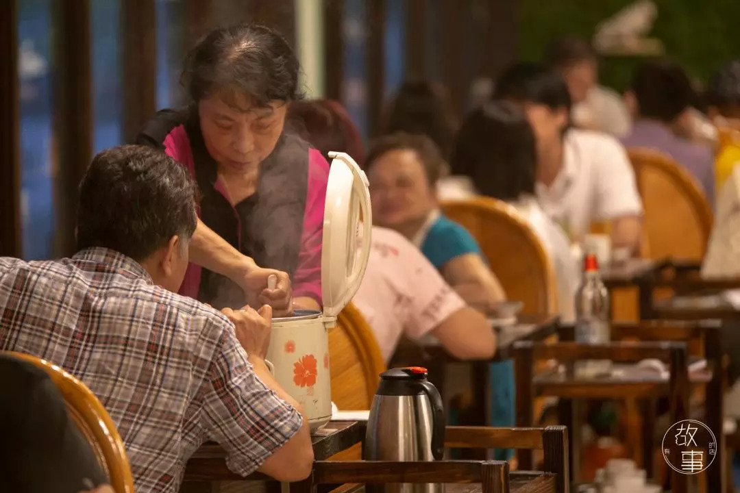 雨停以后,斌哥陪着最后一桌客人下楼,送走了这些老街坊。随后,又回到店内继续为我们安排拍摄的事情。