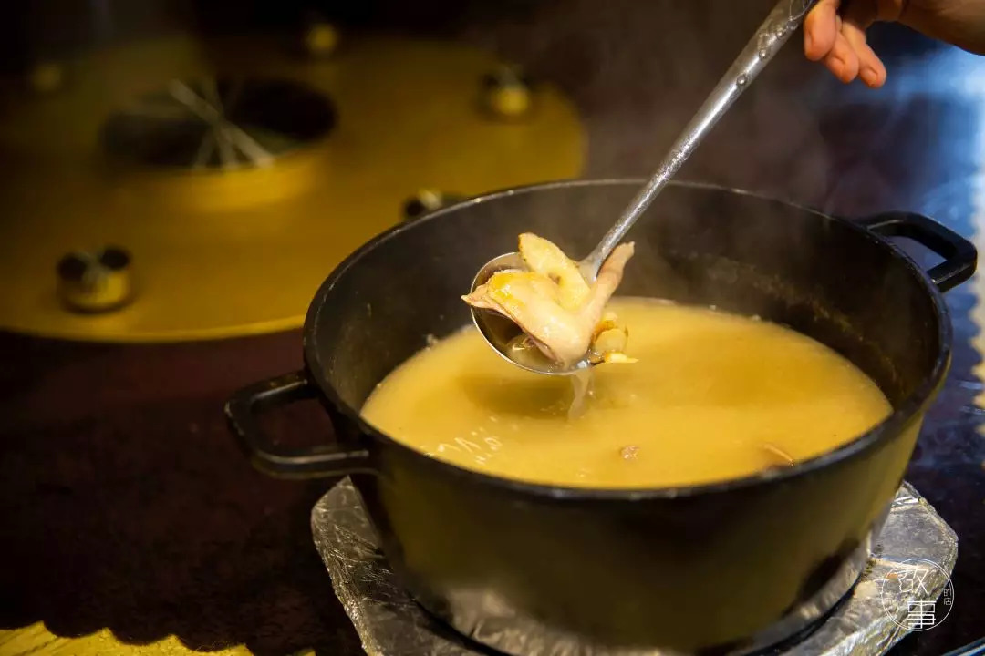 鸽子本是大补食材,烹煮鸽子汤的汤底也无需复杂,与浸泡乳鸽所用的白卤水相似,用的全是极简又常见的药材。待汤底在厨房煲开以后,与生鸽肉一同上桌,由你亲手将鸽肉放于汤锅中煮熟而食,吃的是鸽肉的原汁原味。