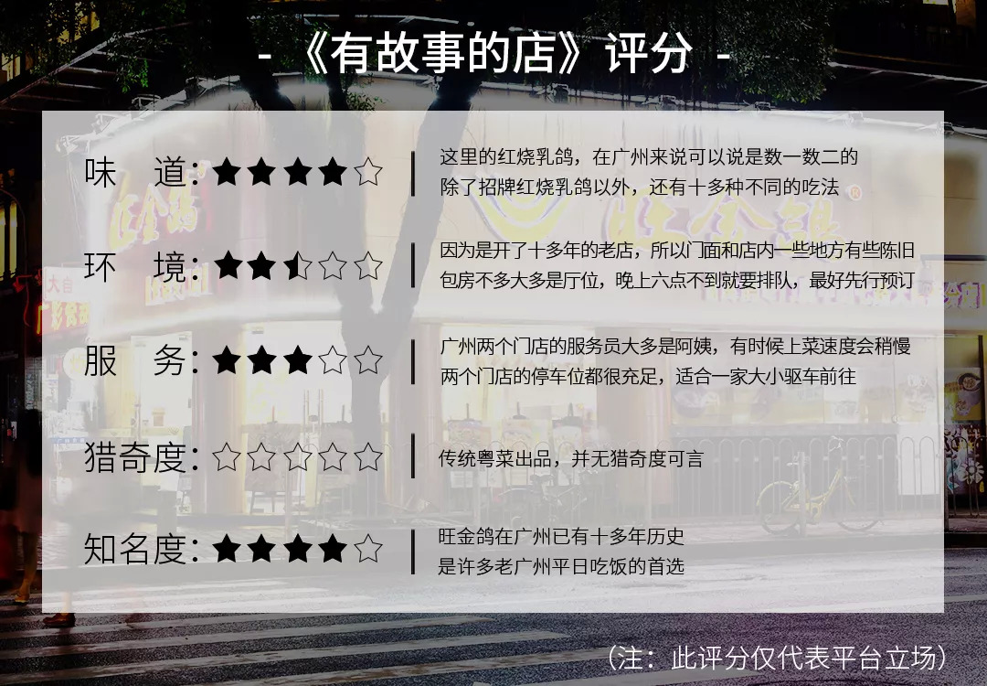 凭借几位创始人对乳鸽的情有独钟,十几年来,不论是南海总店还是广州的两家分店,在对出品严控的这条路上,旺金鸽从未放松过对自身的要求。