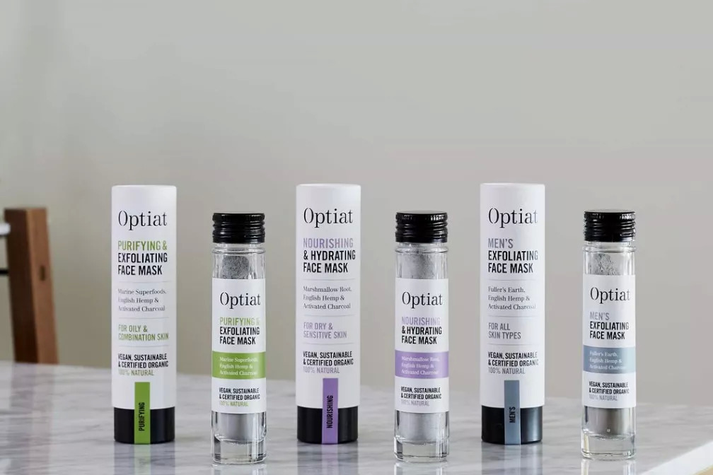 Optiat的去角质面膜使用的原料是大麻籽油加工的外壳,从牛津郡的有机农场Hempen收集,面膜面向油性、混合性和敏感肌肤推出三款面膜,还有一款男士大麻面膜。肥皂系列包含了从印度拉茶生产中遗留下来的香料。产品包装也是可循环利用的,外管是用玻璃瓶、铝制瓶盖和用回收来的卡片制成。
