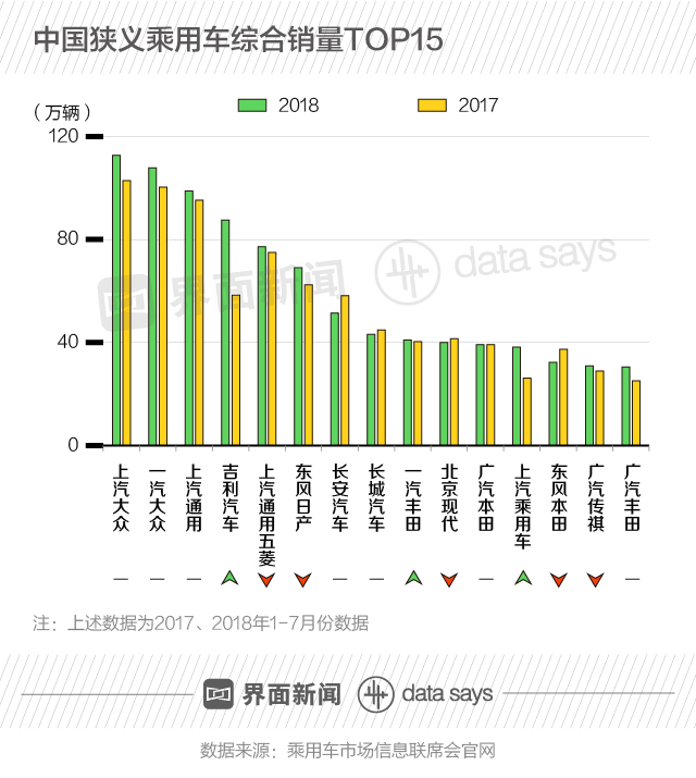 根据乘联会数据,2018年上半年,各车企狭义乘用车销量与2017年同期水平基本相当。
