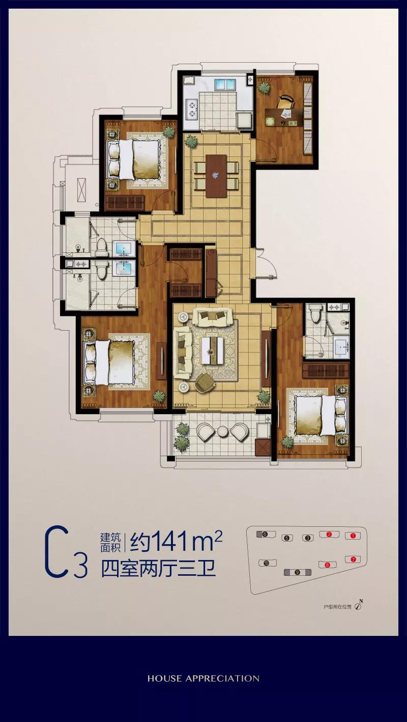 目前项目已经动工,预计10月份首开住宅2#、3#、7#、8#这4栋楼,共计512套房源,户型面积有90㎡、110㎡、120㎡、140㎡共4种,放风价在35000元/㎡左右。
