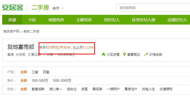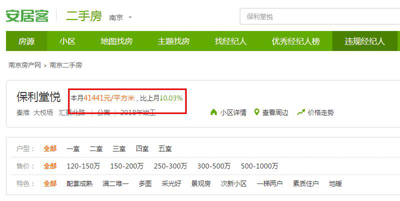 除此之外,复地宴南都和保利堂悦的二手房挂牌均价也已经超过了41000元/㎡,其中复地宴南都倒挂超7000元/㎡,其前期销许均价为33800元/㎡。