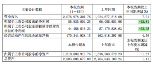 三江购物2018年半年报显示,公司扣非净利润4445.65万元,同比下降22.25%;归属于上市公司股东的净利润下滑13.81%,每股收益下滑13.81%,整体业绩表现不佳。