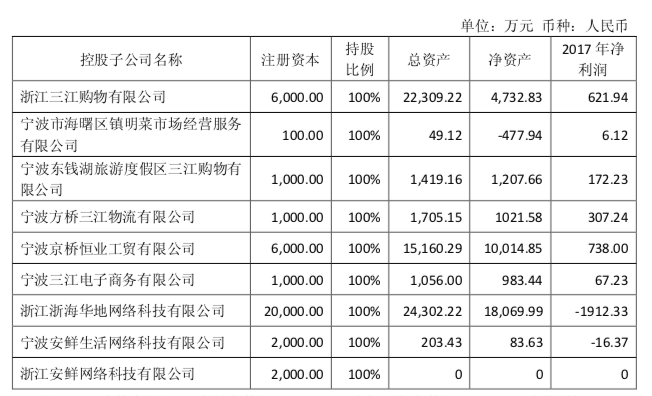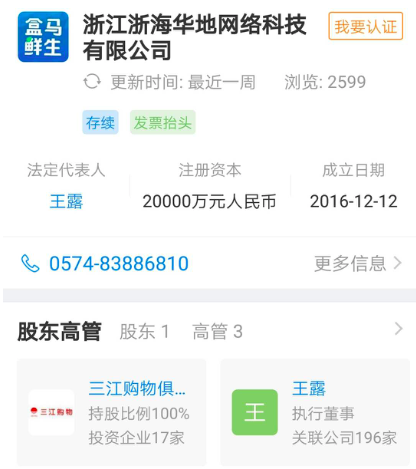 目前,盒马在浙江的代理权归属于浙江浙海华地网络科技有限公司(下称“浙海华地”),而该公司正是三江购物的全资子公司。
