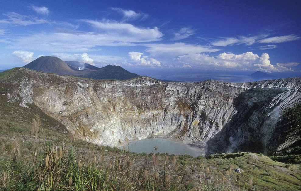美娜多有两座震撼人心的火山——马哈武火山和罗肯火山。拾级而上,登上马哈武火山,近距离观看火山,山风吹来还能闻到淡淡的硫磺味。看着眼前的大坑,你会感叹大自然的神奇力量。放眼望去,能看到海拔达1580米的罗肯火山,依然有硫磺烟冒出,青烟缭绕,气势壮美。