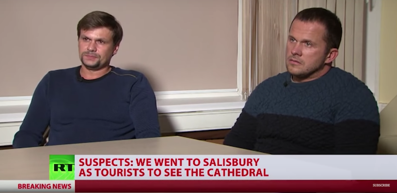 这两位嫌疑人分别是亚历山大·佩特罗夫(Alexander Petrov)和鲁斯兰·博希洛夫(Ruslan Boshirov)。9月5日,英国警方在经历了长达数月的调查之后,公布了两人的姓名与照片,并认为他们为俄罗斯情报组织“格鲁乌”(GRU)工作。