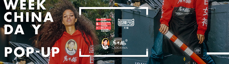 今年的纽约时装周,天猫挑选了包括老干妈等6个有中国特色的品牌,于天猫中国日期间和美国著名买手店Opening Ceremony合作,在9月9日至9月11日推出国潮快闪店(pop-up)。老干妈辣酱在这家快闪店里摇身一变成了120美元的“Lao Gan Ma Hoodie”(老干妈卫衣)和40美元“Sauces Queen(调料女王)”围裙。当然,现场不会少了老干妈各种辣椒酱的身影,售价8美元。