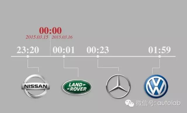 四家被曝光车企的反应时间(以微博为准),从快到慢分别为:东风日产-路虎中国-梅赛德斯-奔驰-上海大众