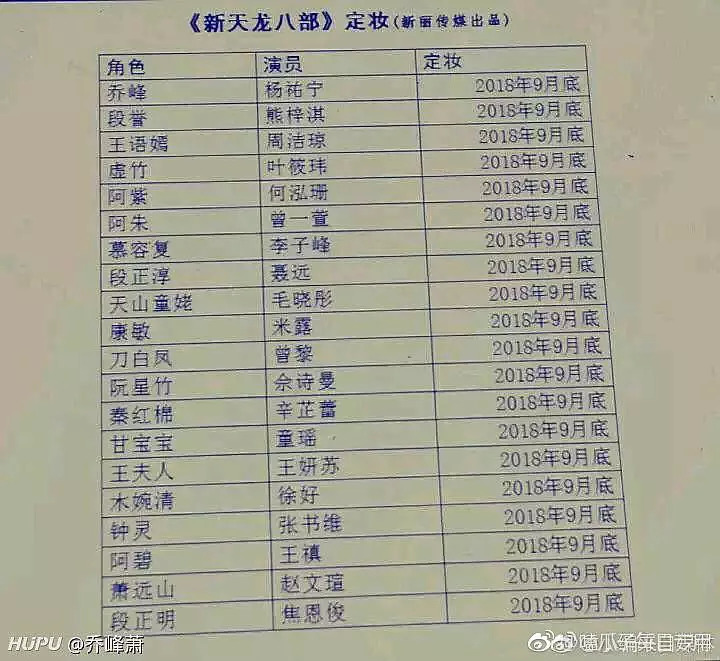 而同样执导了天蚕土豆的男频玄幻IP《斗破苍穹》的于荣光也将执导《天龙八部》,据悉,此版《天龙八部》已经在筹备当中,将于近期在云南开机。目前,该剧曝光了演员表,相比于几位主角,上一辈角色如段正淳(聂远)、刀白凤(曾黎)、秦红棉(辛芷蕾)、阮兴竹(曾黎)的演员阵容更得人心,网络呼声更高。