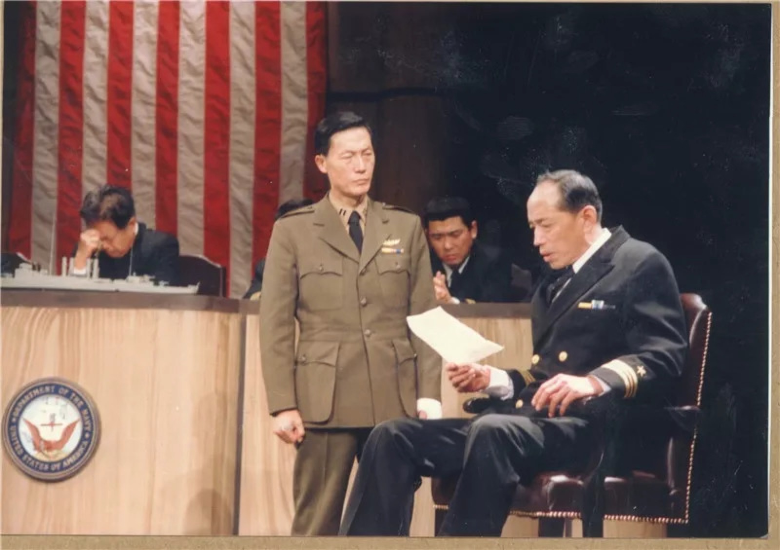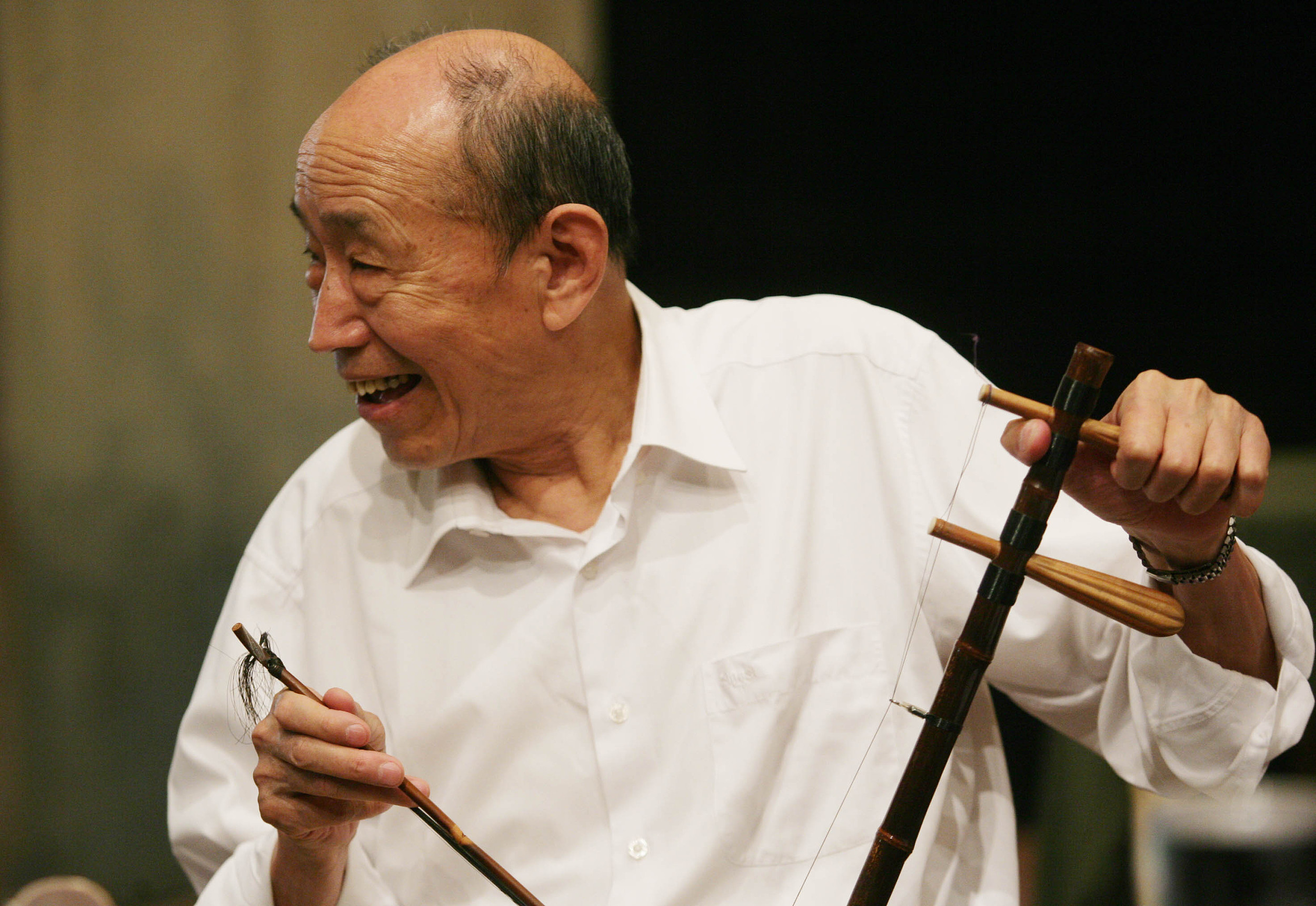 在庆祝会后,老爷子还是早早进入后台化妆间准备。我看到他在静静地翻看一个本子,走进才发现竟然是他自己亲手抄写的台词。虽然剧本早就有了打印版,虽然这戏对他来说演起来毫不费力。而在他身边躺着的是他即将上场要用的胡琴。原来老爷子把自己“兴趣爱好”也利用上,要更丰富地诠释角色了。