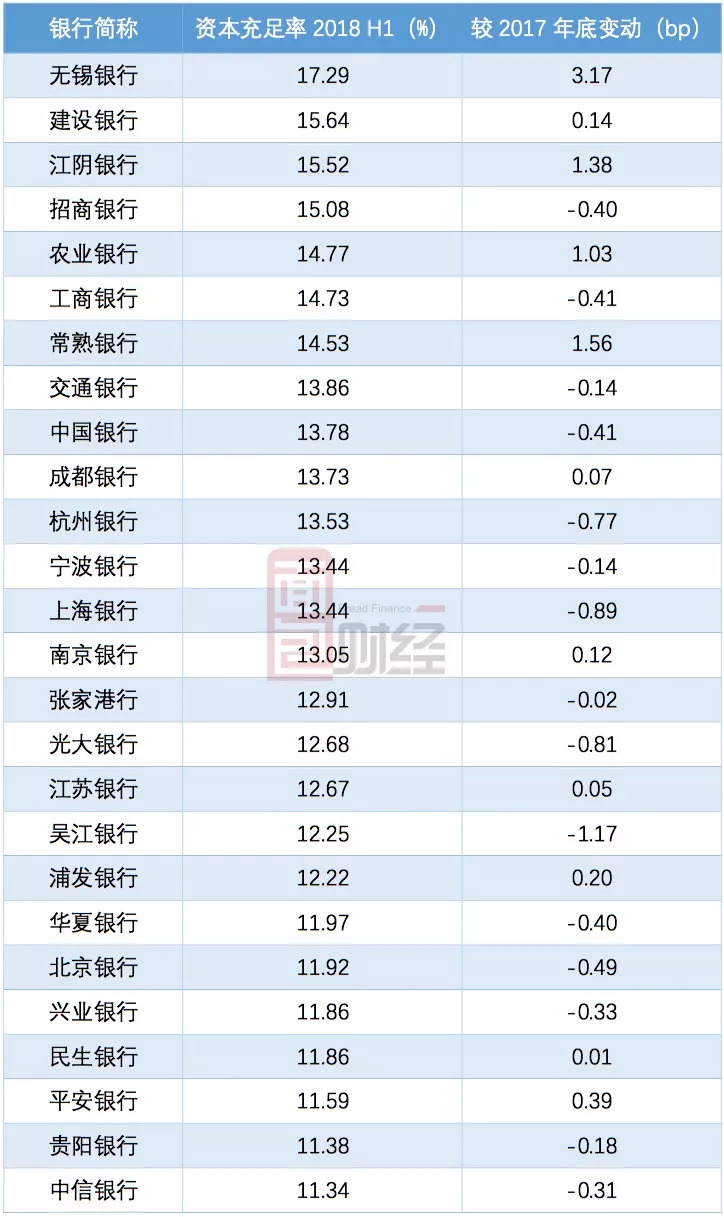 2018年6月底,平安银行的资本充足率比2017年底小幅上升,但仍处于目前A股26家上市银行接近垫底位置。具体情况见下表: