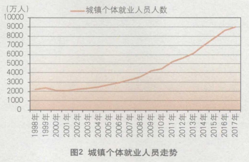 按照现行住房公积金管理条例,住房公积金适用对象为城镇单位人口,包括国家机关、国有企业、城镇集体企业、外商投资企业、城镇私营企业及其他城镇企业、事业单位、民办非企业单位、社会团体等。在统计细分上,包括国有单位、集体单位、股份合作单位、联营单位、有限责任公司、股份有限公司、私营企业、港澳台商投资单位、外商投资单位等。城镇个体户不在住房公积金条例适用范围。被排除在住房公积金制度适用范围之外的城镇个体人口逐年提升,2017年约为9000万人,约占当年全部就业人口的21%(见图2)。将个体就业人员排除于住房公积金制度之外本质上是一种制度歧视,有悖公平或普惠原则。
