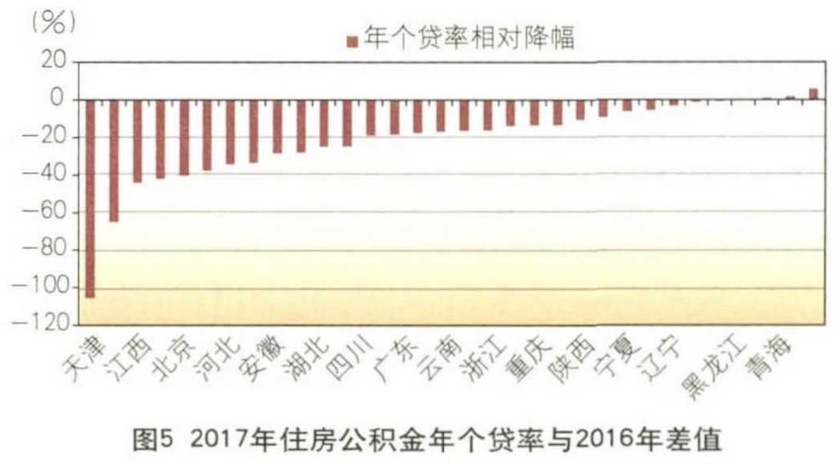 从省间差异看,2017年住房公积金年个贷率出现大面积下滑。32家省市自治区(包括新疆生产建设兵团)中,只有4家年个贷率维持了小幅上涨,28家年个贷率出现了不同程度的下降。