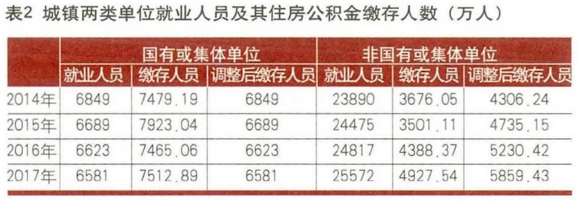 需要说明的是,城镇国有或集体单位住房公积金的缴存人口大于就业人口(见表2),其中的原因之一可能是机构改革特别是国有或集体企业改制导致单位就业人口的重新归类和统计出现误差。对此,本文将超过的部分归入城镇非国有或集体单位,表1中城镇国有或集体单位缴存覆盖率和城镇非国有或集体单位(外商投资单位除外)缴存覆盖率就是据此计算出来的。即便如此,城镇非国有和集体单位的住房公积金缴存覆盖率依然很低,仅有约两成职工享受到住房公积金制度的红利。