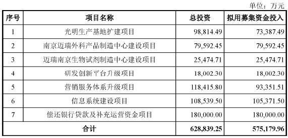从募资投向来看,计划建设项目从8个减少为7个,迈瑞医疗放弃了南京迈瑞外科产品研发及试产中心建设项目,此外营销服务体系升级项目还减少了拟使用募资近2.51亿元,其余项目投入金额保持不变。