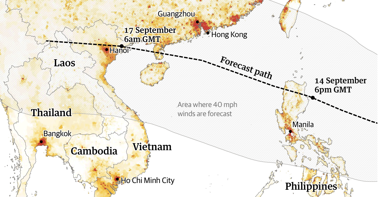 今年第22号台风“山竹”预计将于15日凌晨1点到5点在菲律宾吕宋岛北部的卡加延省和伊莎贝拉省附近登陆,登陆强度为超强台风17级,当地沿海地区恐引发5-6米的风暴潮。“山竹”很可能于本周末袭击中国华南沿海。